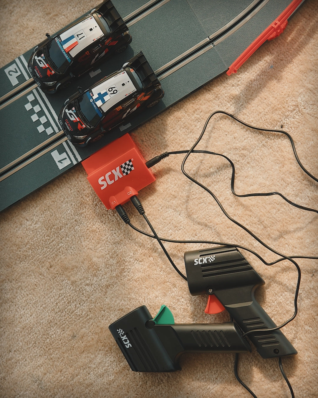 The set comes in a box and features adjustable magnet, barriers, bridge, track adaptation and the Gran Chicane for more fun! Track is 5,2m.